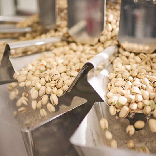 Nakon pečenja, pistaći se porcionišu pomoću vage sa više glava i pakuju u kese za orašaste plodove.