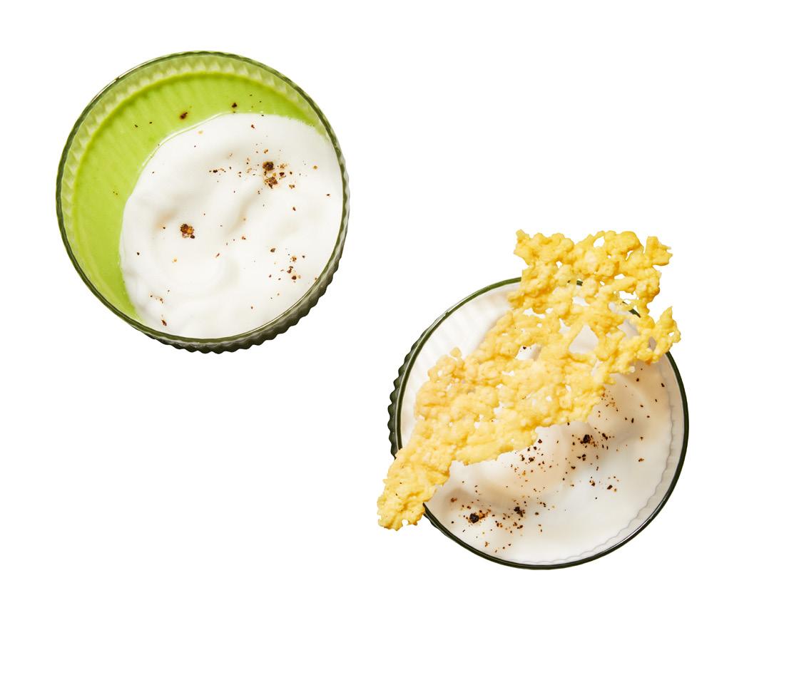 Mleko dovesti do tačke ključanja, skloniti sa ringle i ubaciti dva žumanceta.