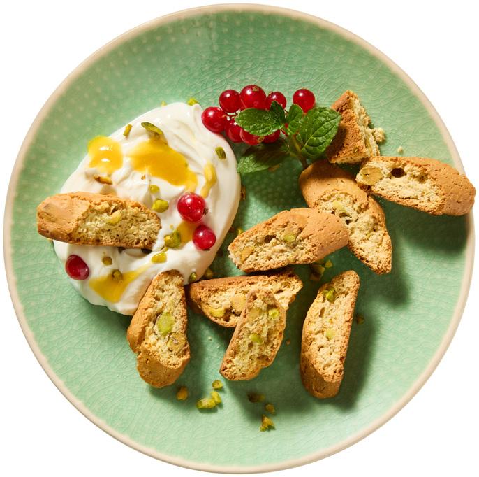Pistaći su odlični kao užina jer podržavaju vitalnost: sadrže „dobre“ masti, puno proteina i druge važne hranljive materije za naše telo. Kao užina, oni te dugo drže sitim i daju energiju. Prirodni i bez soli, idealni su i kao zeleni preliv za tvoje uskršnje kolače.