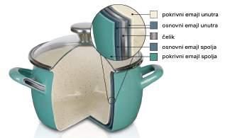 Emajlirano posuđe je pogodno za sve načine pripremanja hrane i životne navike. Pored stakla, emajl je najbolji i najprikladniji materijal za posuđe i za kontakt sa hranom.