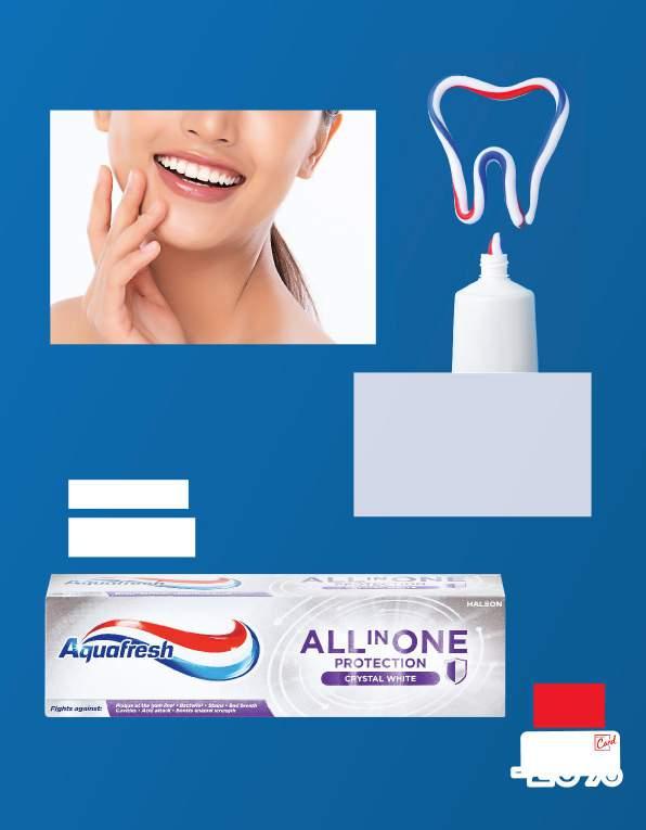 Isprobaj Aquafresh All In One Protection pastu za zube Crystal White i otkrij 8 ključnih prednosti za jake i zdrave zube. Sprečava karijes, omogućuje zdravlje desni, daje svjež dah, uklanja plak, ima izvrstan okus, uklanja površinske mrlje, jača zubnu caklinu i djeluje antibakterijski.