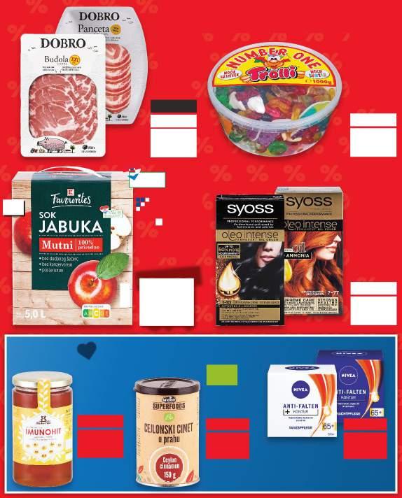 **Sve navedene cijene izražene su u eurima s PDV-om. Ne odgovaramo za tiskarske pogreške. Fotografije proizvoda ne moraju 100% odgovarati dotičnim proizvodima. Proizvode iz aktualne ponude možete kupiti samo u količinama predviđenim za kućanstvo. ***Proizvodi označeni kao kratkotrajna ponuda na raspolaganju su do zadanog datuma, odnosno do prodaje zaliha.