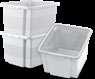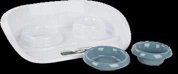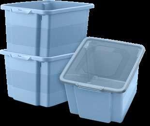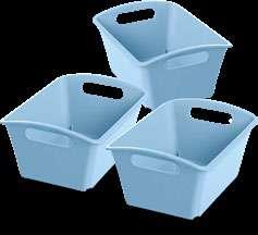 Dostupne su: Kanta s ručkom 10 L, Okrugla posuda promjera 32 cm, Četvrtasta posuda 34 x 34 cm, boje: bijela, svijetlo plava ili žuta.