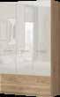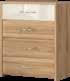 Komoda je u beloj mat boji i po prvi put u ponudi, unutrašnjost u drvodekoru Furneo hrast. Zlatne ručice, visoke nožice i diskretne obline čine je elegantnom, dok soft-close mehanizam omogućava tiho zatvaranje fioka i vrata. Kombinacija forme i funkcije podiže celokupan enterijer na viši nivo. Komoda sa tri fioke i dva krila pruža lakoću u svakodnevnom odlaganju.