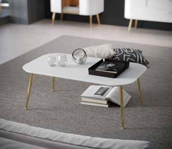 TV sto u kolekciji Galet kombinuje funkcionalnost i estetiku. Ravne površine i obli frontovi, u beloj boji, omogućavaju lako uklapanje u savremene enterijere, a zlatni detalji naglašavaju luksuz. Visoke nožice olakšavaju održavanje. Metalni ram pruža dodatnu stabilnost i sprečava mogućnost ulegnuća i habanja. Praktičan zbog dve fioke i krila. Korpus je u drvodekoru Furneo hrast, dok unutrašnjost fioka krasi dekor tekstila.