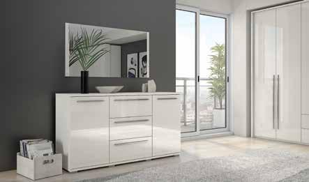 Nekoliko TV stolova, vitrina, komoda, polica i visećih elemenata različitih širina, sa punim krilima ili sa staklom, daju dovoljno mogućnosti za veliki broj kombinacija.