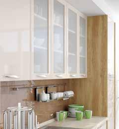 Po prvi put u našoj ponudi predstavljamo staklene vitrine za kuhinje –funkcionalan i estetski dopadljiv dodatak. Dostupne su u dve širine 40 i 80 cm i dve visine 219cm i 238cm, sa okvirima u šampanj i antracit boji. Unutrašnjost elemanta može biti u Pacifik orah, Furneo hrast i Tekstil dekorima.