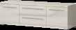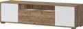 TV sto u kolekciji Galet kombinuje funkcionalnost i estetiku. Ravne površine i obli frontovi, u beloj boji, omogućavaju lako uklapanje u savremene enterijere, a zlatni detalji naglašavaju luksuz. Visoke nožice olakšavaju održavanje. Metalni ram pruža dodatnu stabilnost i sprečava mogućnost ulegnuća i habanja. Praktičan zbog dve fioke i krila. Korpus je u drvodekoru Furneo hrast, dok unutrašnjost fioka krasi dekor tekstila.