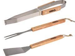 Pribor za roštilj, 1 set 3 kom set sadrži hvataljku, lopaticu i vilicu razne dimenzije materijal: nehrđajući čelik s drvenom ručkom