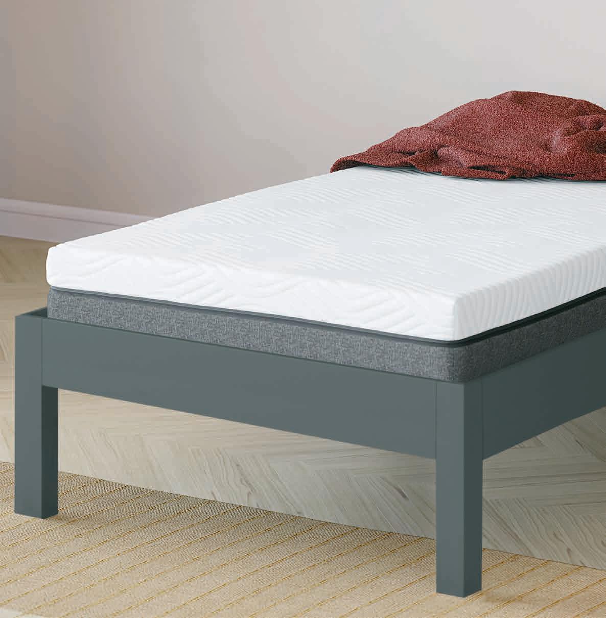 1 naddušek sa jezgrom od polieterske pene visine 4 cm. Osnova se sastoji od 1 rama. Sa nogama. Bez uzglavlja. 90x200 cm* 140x200 cm* 55000,-