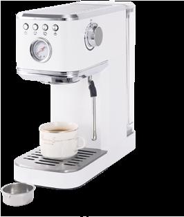 2u1 Espresso aparat za kavu, snaga 1350W / 220-240V, 50Hz, pritisak pumpe: 20bara, termoblok tehnologija, NTC i PID kontrola temperature, metalno kućište u sjajnoj bijeloj boji, gornji poklopac s funkcijom grijanja, šalice; 1,2L odvojivi prozirni spremnik za vodu, s funkcijom pjene