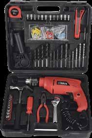 Priloženi alati: stolarski čekić, kombinirana kliješta, podesiva kliješta, magnetni nastavak, tapetarski nož, mjerna traka, set nasadnih ključeva, set 25mm nastavaka, set za bušenje, vijci s tiplom