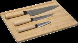U setu dolazi 3 noža - nehrđajući čelik, daska - bambus dimenzije: 35x25x4cm.