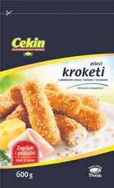 Panirani pileći kroketi s dimljenim sirom, šunkom i sezamom 600g Cekin smrznuto (1kg=9,32€)