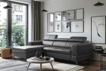 1.790 € 2.039 € Kožna kutna garnitura TORINO, 247x173cm, ležaj 125x195cm, spremnik, 3x pomična naslona za glavu. Cijena vrijedi za materijal koža/eko koža Madras 511 (antracit). Količine su ograničene.