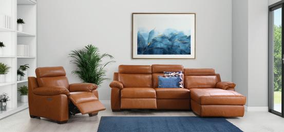 € Kožna kutna garnitura MILLES, 155/174cmx266, lijevo ili desno, 1x el. pomični damski, 1x el. pomični naslonjač, USB punjač, prava koža. Cijena vrijedi za pravu kožu kat. A0S 10YT (konjak), vrhunska udobnost.
