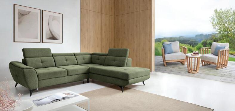 2.690 € Kutna garnitura SERGIO, 274x231cm, ležaj, 125x195cm, spremnik, 4x podesivi glavonasloni, vrijedi za materijal Barrel 38 (zelena) i 83 (svjetlo siva). Količine su ograničene.