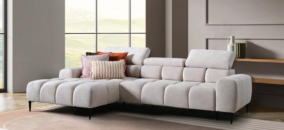 Kutna garnitura RENO, 248x184cm, lijeva ili desna strana, 1x električna relax funkcija, 2x pomični nasloni za glavu.