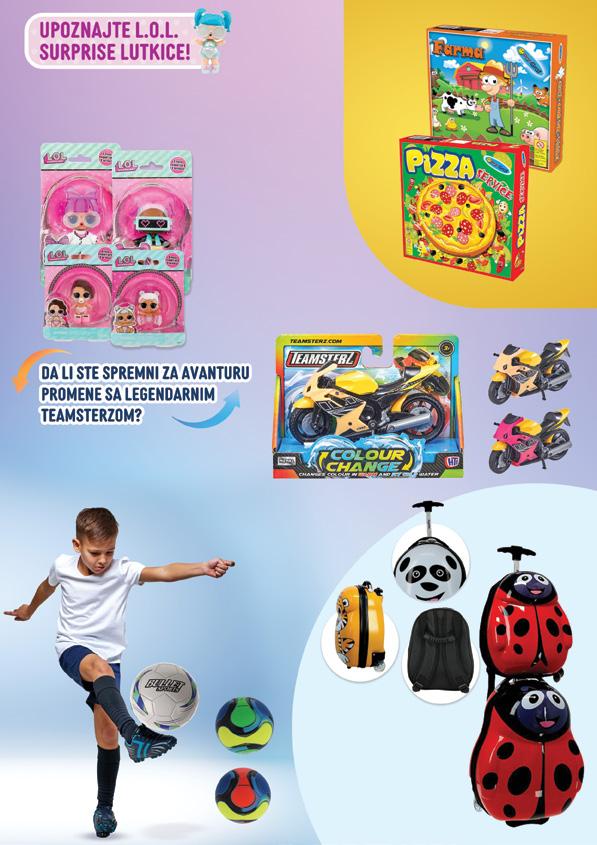 LOL SUPRISE IGRAČKA Lil sis Lutkica -22% 41999 539,99 -25% 64999 869,99 DRUŠTVENA IGRA Farma DRUŠTVENA IGRA Pizza service -25% 29999 399,99 -28% 34999 489,99 TEAMSTERZ MOTOR Igračka koja menja boju -20% 94999 1199 DEČIJI KOFER I RANAC Set Bubamara, panda, tigar LOPTA ZA FUDBAL 59999 699,99 MINI LOPTA -16% 49999 599,99 3+ 3+