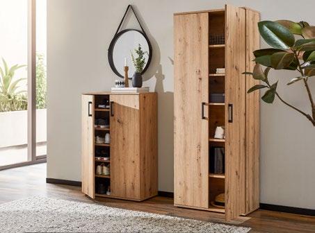 Program Alex, boja: artisan hrast ili artisan hrast/antracit, crne ručke, 2 vrata, 5 podesivih polica. Višenamenski ormar dim. 70x179x33,5 cm 11.999,- 9.499,- RSD. Cipelarnik dim. 70x106x33,5 cm(00030023/01-03,05)