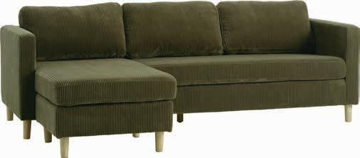 Trosjed od tkanine. Sjedište i naslon od pjene. Noge od masivne brezovine. S prostorom za pohranu. Lijevi ili desni kutni dio. Površina za spavanje: 140x195 cm. Š230xV83xDub88/150 cm