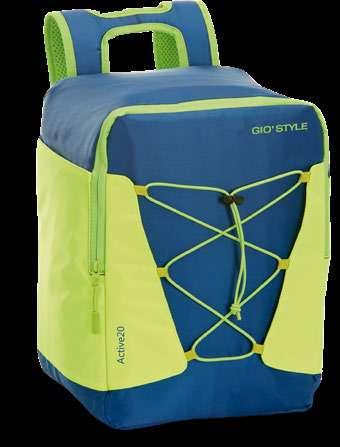 2 pretinca s dvostrukim zatvaračem, 2 podesive trake za nošenje smotanog ručnika, dimenzija 44,5 x 28 x 31 cm.