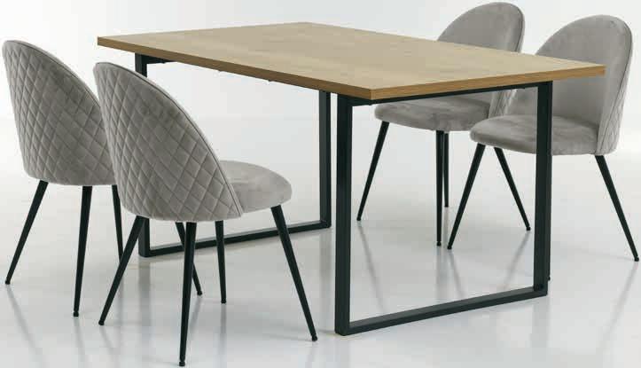 Sto: ukrasni furnir i čelik. Š90xD160xV75 cm. Stolice: baršun i čelik. Sto 19999,- 11500,- Stolica 9999,- 5000,-