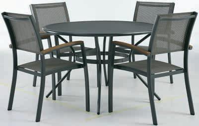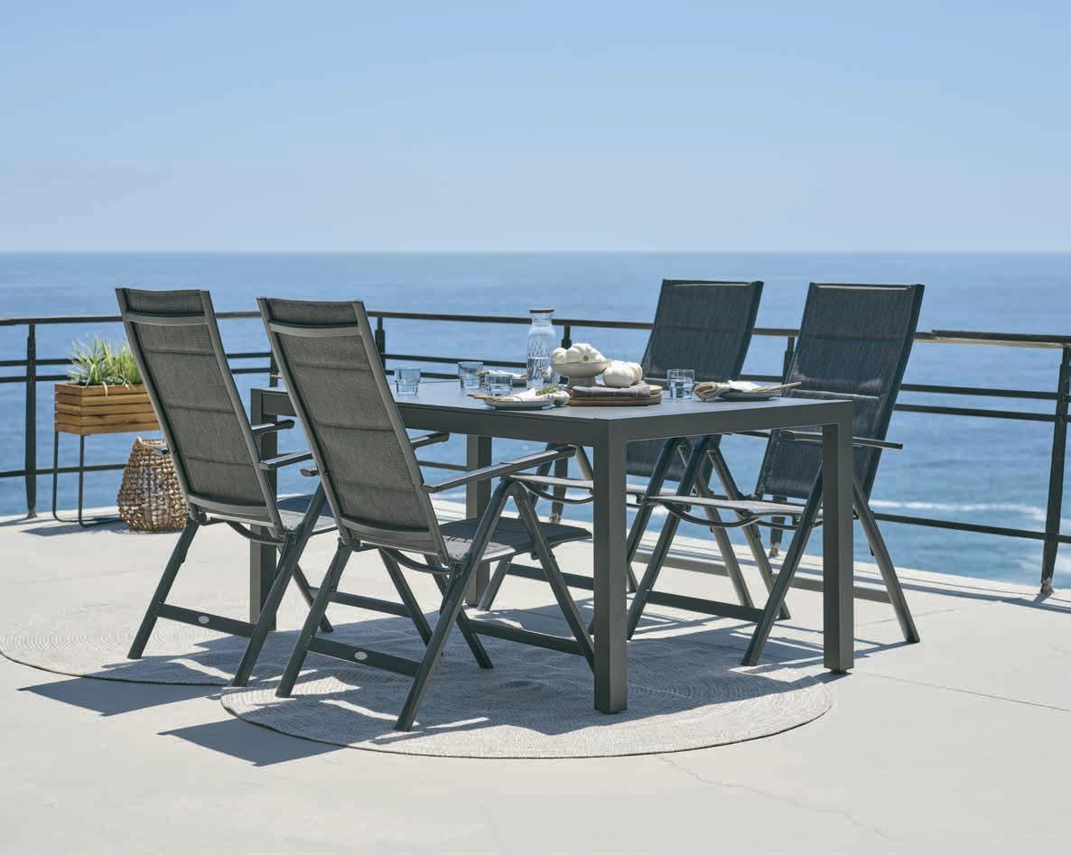LARVIK sto + SIRDAL stolice Sto: aluminijum i čelik. Sa Durasint® premazom protiv rđe. Ø120xV74 cm. Stolice: aluminijum, tekstilen i nauljeno FSC™ tvrdo drvo. Mogu da se slažu jedna na drugu. Sto* 34999,- 25000,- Stolica 9999,- 6500,-