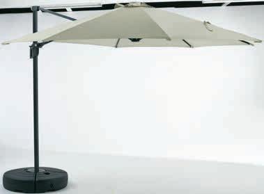 Vodooodbojno poliestersko platno sa UV-zaštitom i aluminijumska šipka. Sa nagibnim mehanizmom, ručkom za otvaranje i ventilacionim otvorom. Sa vodoodbojnom navlakom i postoljem. Ø300xV246 cm 39999,-