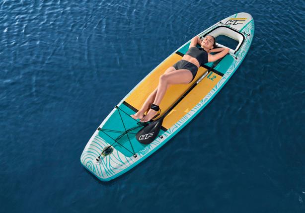 • sadrži: SUP, podesivo aluminijsko veslo, ručnu pumpu, ruksak, sigurnosni konop, sjedalo, oslonac za noge, središnja peraja, komplet za popravak