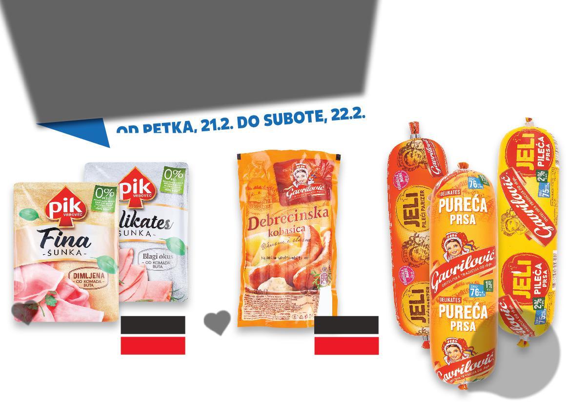 Pileće i pureće kobasice 350g GAVRILOVIĆ 1.25€ VEĆ OD
