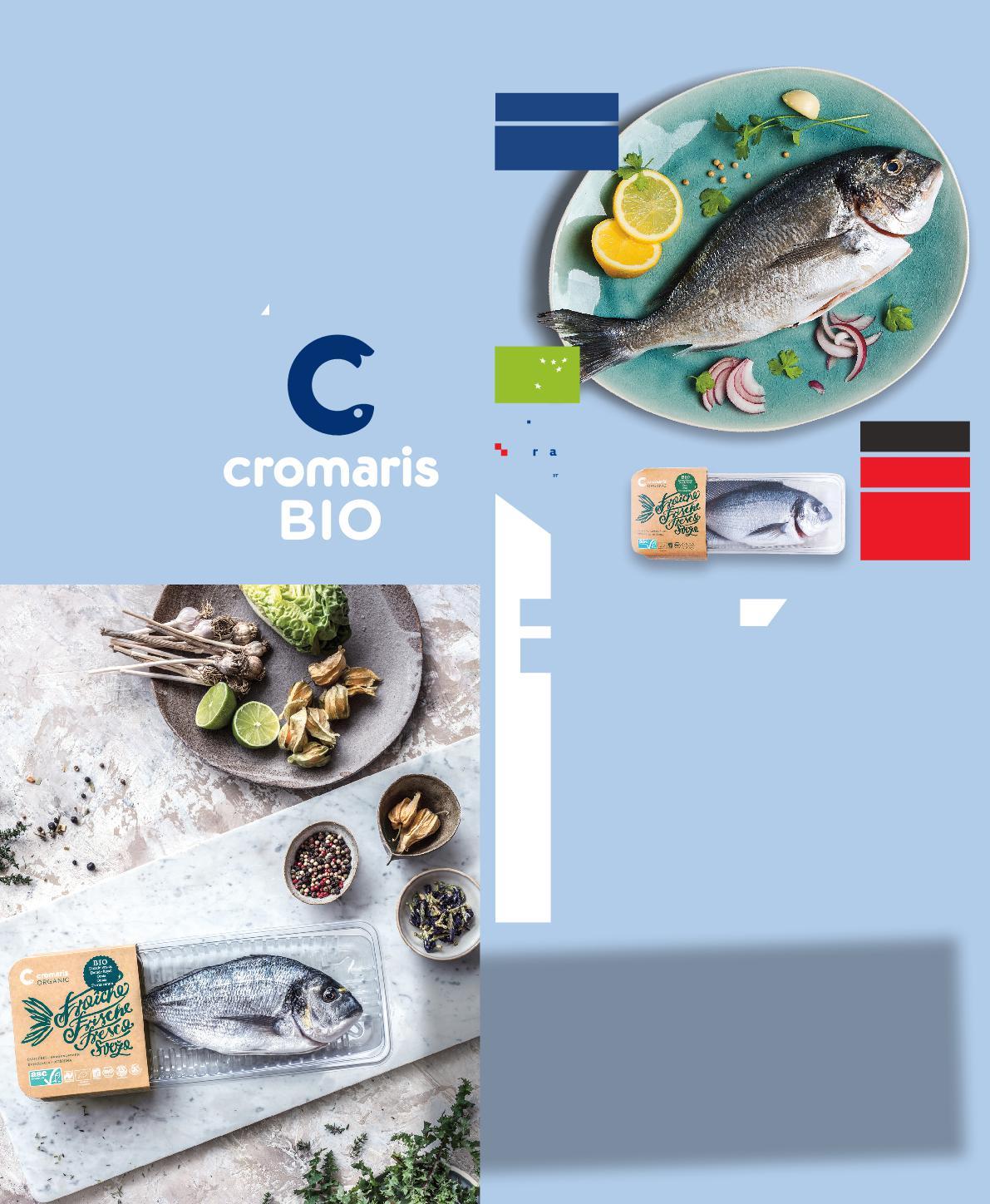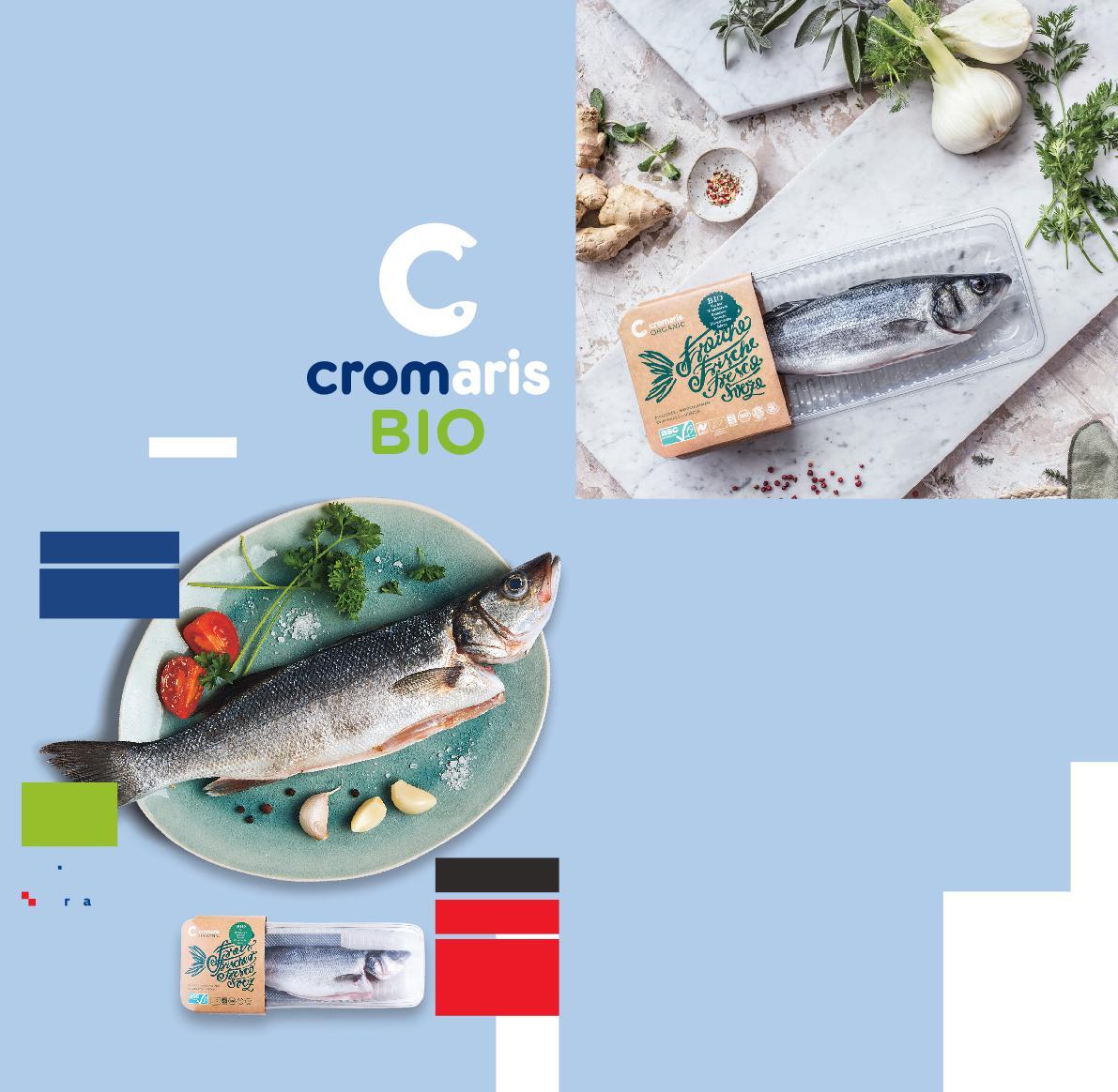 Asortiman Cromaris BIO ribe - orada, brancin i hama, uzgojen je u skladu sa strogim ekološkim standardima na odabranim lokacijama Jadranskog mora, bez upotrebe antibiotika i GMO sirovina.