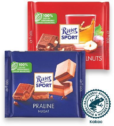 RITTER SPORT Mliječna čokolada odabrane vrste