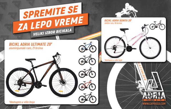19.999 23.999 24.999 29.999 -20% -20% Bicikl CTB Jasmin 28” Beli, bež, crni ADRIA 19.999 24.999 -20% Bicikl CTB Melody 26” HT Pink, crni, beli ADRIA 18.999 23.799 -20% VOŽNJA
