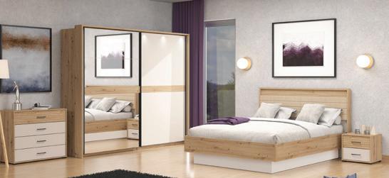 € 1.376 € Spavaća soba ENA: krevet, 160x200cm + ormar, 220x217x62cm, s ogledalom + 2x noćni ormarić, 48x44x40cm. Dodaci poput okvira, dodatnih polica i led rasvjete dostupni uz nadoplatu.