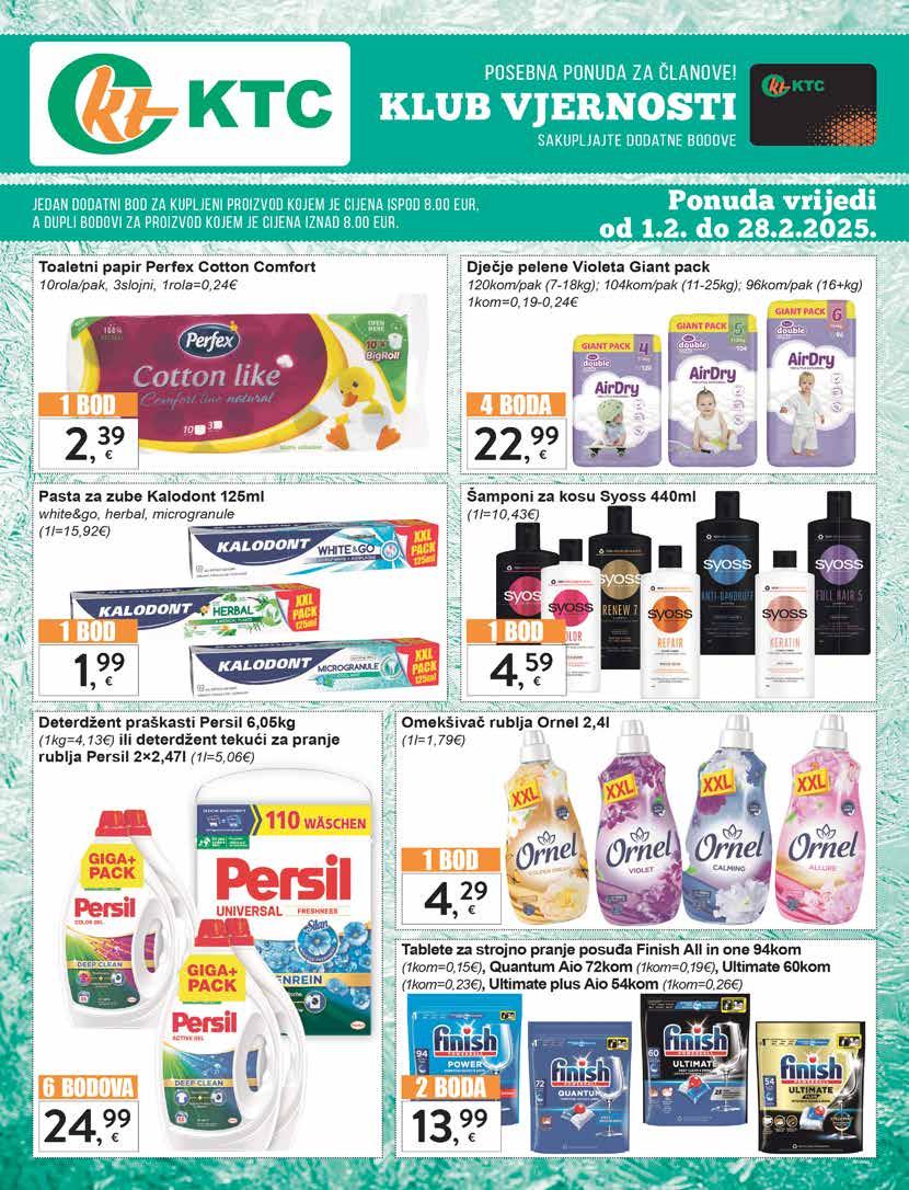 Nakladnik: KTC d.d., N, Tesle 18, 48260 Križevci, Tel: 048/628-554 U nekim prodajnim prostorima, zbog ograničenog prostora, nisu dostupni svi proizvodi iz letka . KTC d.d. zadržava pravo promjene cijena uslijed promjena cijena na tržištu | Sve fotografije proizvoda su simbolične, te ne moraju odgovarati stvarnom proizvodu | KTC d.d. zadržava pravo tiskarske pogreške ROBNI CENTRI: BJELOVAR-50, Pakračka ulica 1, 043/638-871, ČAKOVEC-64, Športska 4, 040/638-271, DARUVAR-78, Krste Frankopana 35, 043/638-380, ĐURĐEVAC-59, Đure Basaričeka 16, 048/628-080 GRUBIŠNO POLJE-76, Ulica N. Š. Zrinskog BB, 043/639-170, IVANEC-58, Ivanečko naselje 1c, 042/771-870, KARLOVAC-8A, Senjska 118, 047/658-100, KOPRIVNICA-40, I. Česmičkog 15, 048/628-330, KOPRIVNICA-88, Trg Eugena Kumičića 1, 048/617-640, KRAPINA-77, Bobovje 52/c, 049/658-100, KRIŽEVCI-95, N. Tesle 18–048/628-595, TC KRIŽEVCI-07, Samoposluga–Trg Sv. Florijana 1, 048/628-145, KUTINA-54, Sisačka ulica 14, 044/660-871, MURSKO SREDIŠĆE-86, Tekstilna ulica 1, 040/644-230, PAKRAC-69, I. Gundulića 1b, 034/638-970, PETRINJA-79, Ul. Ivana Gundulića 14, 044/500-551, PITOMAČA-42, P. Preradovića 2, 033/638-902, POŽEGA-44, P. Radića 46A, 034/638-152,PRELOG-62, Zrinskih bb, 040/638-160, SISAK-41, N. Tesle 12/b, 044/660-926, SLATINA-43, Industrijska bb, 033/638-021, VARAŽDIN-87, Gospodarska 3, 042/658-850, VIROVITICA-46, Vukovarska 3a, 033/638-970, VRBOVEC-48, Zagrebačka 48, 01/2793-242, ZABOK-60, Prilaz Janka Tomića 1, 049/658-966, DUGO SELO-90, II Savski odvojak 12,01/688-6230