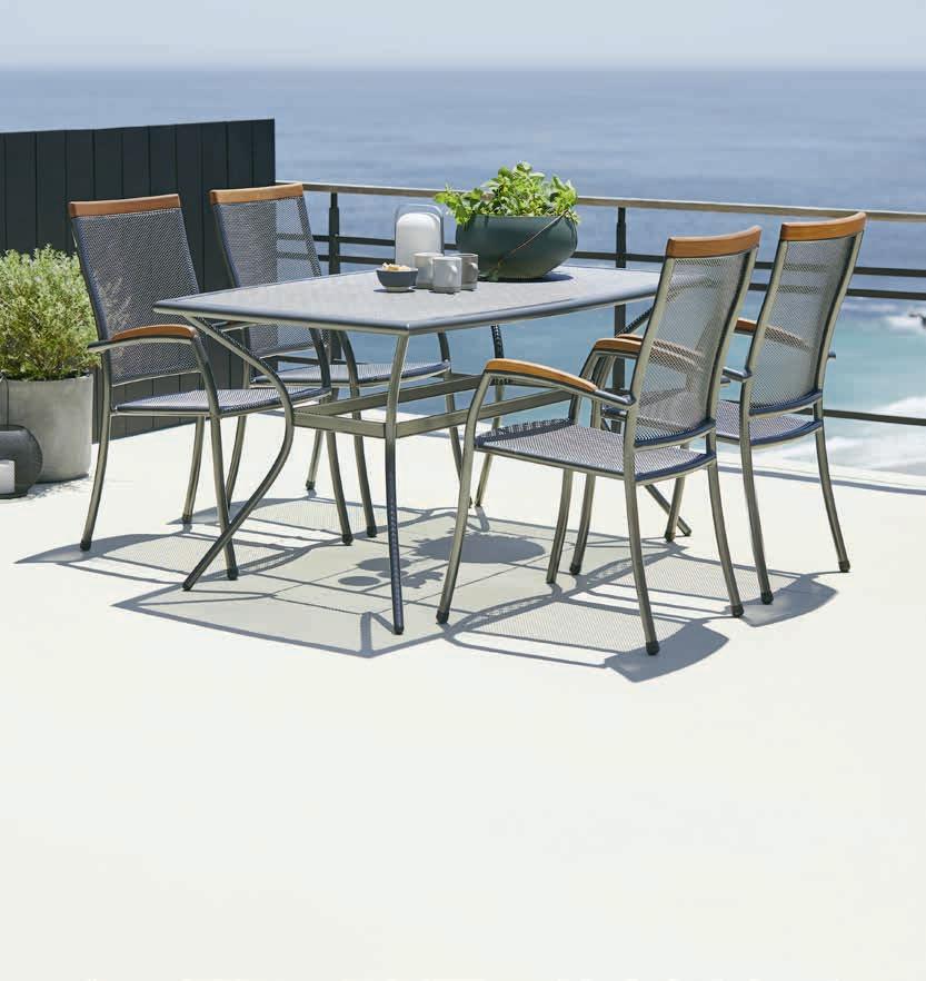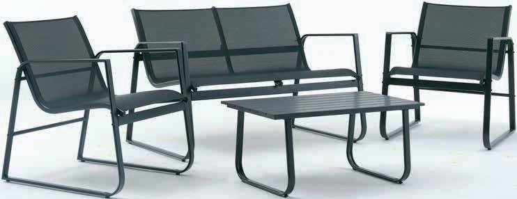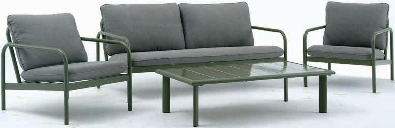 Stol: Aluminij, čelik i keramika. Š65xD127xV35 cm. Trosjed i stolice: Čelik. S luksuznim jastucima s dugotrajnom, grubo tkanom navlakom.* 849 €