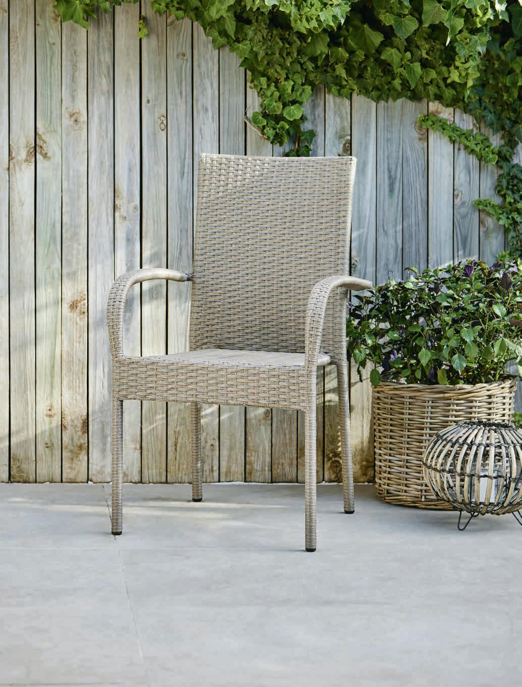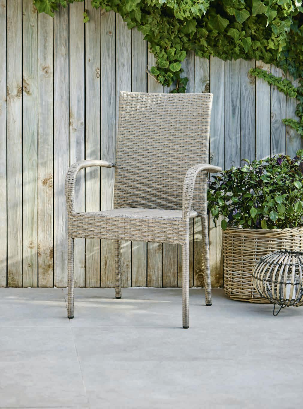 Stol: Čelik, nauljeno FSC® tvrdo drvo i petan. Š56xD93xV43 cm. Dvosjed i stolice: Čelik i petan. S luksuznim jastucima s dugotrajnom, grubo tkanom navlakom.* 549 €