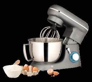 snaga:1300 W, posuda od nehrđajućeg čelika kapaciteta 4,5 L, 6 brzina, 3 različita nastavka, s funkcijom pulsiranja, planetarno miješanje, poklopac protiv prskanja 1 kom