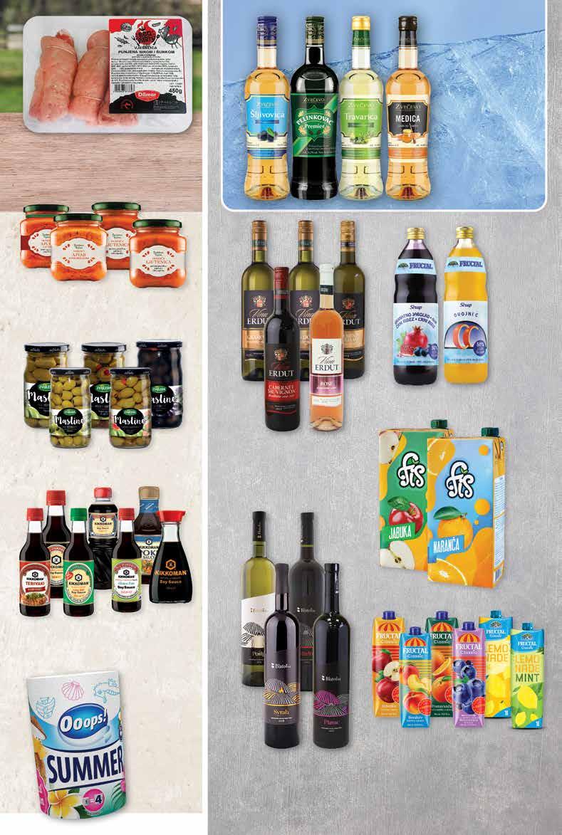 FIS Voćni sok jabuka ili naranča 2 l BLATO Pošip, Merlot, Syrah ili Plavac bijelo ili crno vrhunsko vino 0,75 l BAKINA TAJNA Ajvar razne vrste 300 g FRUCTAL Sirup odabrane vrste 1 l FRUCTAL Sok nektar razne vrste odabrani proizvodi 150 - 500 ml -30% KIKKOMAN Umaci odabrani proizvodi 350 - 720 ml -20% ZVIJEZDA Masline ERDUTSKI VINOGRADI Bijelo, crno ili rose kvalitetno vino odabrane vrste 0,75 l OOOPS Papirnati ručnik Summer -0% € PrilikaPrilikavikenda! tjedna! Super prilika! 1 29 € 1 rola PrilikaPrilikavikenda! tjedna! Super prilika! 4 49 € 1 l = 5,99 € 0,75 l -24% 5.97 € -23% 1.69 € PrilikaPrilikavikenda! tjedna! Super prilika! 1 29 € 1 l PrilikaPrilikavikenda! tjedna! Super prilika! 1 39 € 1 l = 0,70 € 2 l -26% 1.89 € 1 kg = 13,70 € PrilikaPrilikavikenda! tjedna! Super prilika! 4 11 € 300 g -25% 5.49 € PrilikaPrilikavikenda! tjedna! Super prilika! 6 99 € 1 l = 9,32 € 0,75 l -24% 9.29 € PrilikaPrilikavikenda! tjedna! Super prilika! 2 69 € 1 l -10% 2.99 € ZVEČEVO Rakija ili Liker odabrane vrste 0,7 - 1 l HIT cijena! 7 39 € Štedi više! Plati manje! 50% sniženoSuper svježa prilika!Već od DILMAR Punjena vješalica sa slaninom i sirom 400 g Već od HIT cijena! 3 69 € 1 kg = 9,23 € Štedi više! Plati manje! 50% sniženoSuper svježa prilika! 2 l Fotografije proizvoda ne moraju u potpunosti odgovarati stvarnom izgledu proizvoda. Kupnja je moguća samo u količinama primjerenim za kućanstvo. Sve navedene cijene izražene su u eurima s PDV-om. Ne odgovaramo za tiskarske pogreške. 5