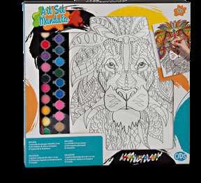 Uključuje 1 platno, 1 drveni okvir, 24 tempera boje i 4 kista. Dostupno u dizajnu jednoroga ili lava.