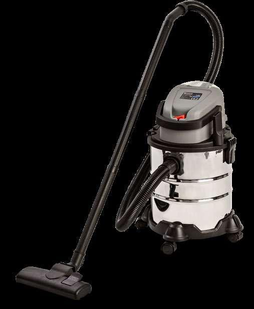Višenamjenski bežični usisavač, učinkovito uklanja mokru i suhu prljavštinu, spremnik od 20 l, 4 kotača. Moć usisavanja 8kPa, autonomija baterije 15 min. Baterija i punjač uključeni.