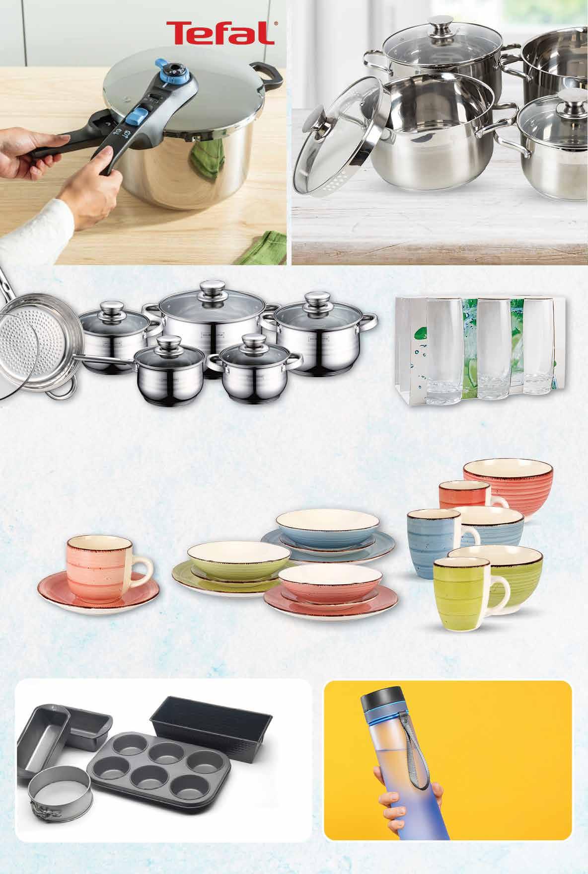 • set se sastoji od posuda za kuhanje i poklopaca dimenzija 16, 18, 20, 24 cm, posude za kuhanje s jednom ručkom od 16 cm s poklopcem i tave promjera 24 cm s poklopcem