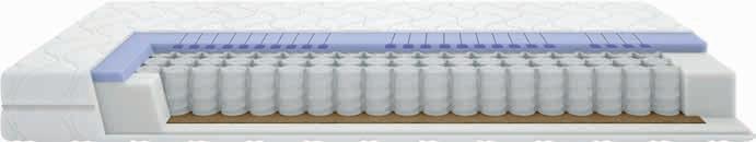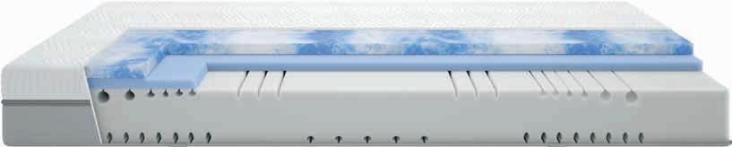 Luksuzan madrac s multidžepičastim oprugama (520/m²), podijeljen na 7 zona udobnosti. Madrac je punjen hladnom i poliuretanskom pjenom. Navlaka sadrži rashlađujući polietilen s jedne strane. Debelo prošivena navlaka s memorijskom pjenom koja ublažava pritisak. Visina: 28 cm. 80x200 cm* 699 € 90x190*/200 cm 749 €