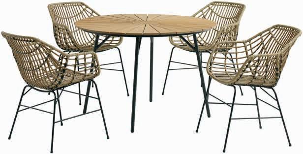 6 MAGLEBJERG STOL + MAGLEBJERG STOLICE Stol: Masivna FSC® tikovina. Ø120xV75 cm. Stolice: Čelik i oblikovana plastika s UV-zaštitom. Stol 219 € 165€ Stolica 189 € 150€ Uštedite 25% 165 € STOL Samo