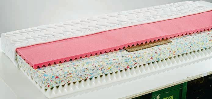 Luksuzan madrac s jezgrom od 2,5 cm fleksibilne Comfort+ pjene, 15,5 cm polieterske pjene i 4 cm zračne memorijske pjene koja ublažava pritisak s bambusovim ugljenom koji upija vlagu. Periva navlaka, tretirana protiv grinja. Visina: 22 cm. 80x200 cm 449 €
