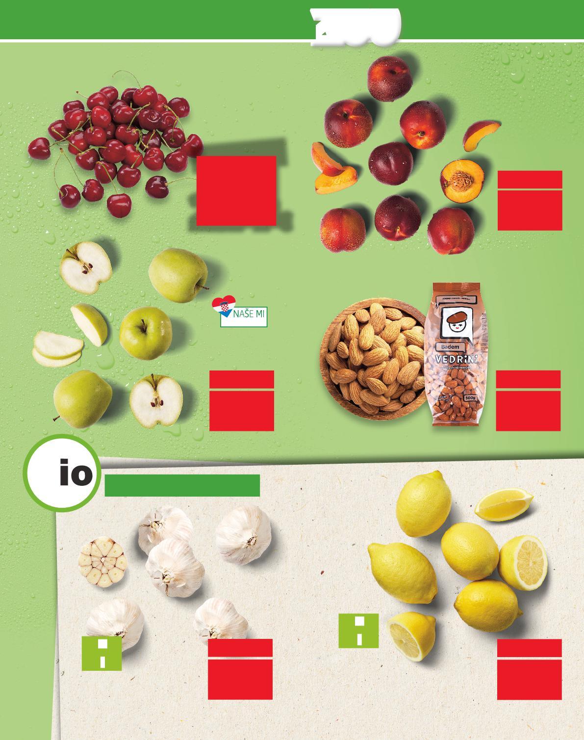 DO UTORKA, 28.5. DO 28.5. Pronađi više od 200 VRHUNSKIH PROIZVODA SVJEŽEG VOĆA I POVRĆA VEDRINI Badem jezgra 500 g (=1 kg 5,98€) samo SUPER CIJENA SUPERCIJENA UPER-40% 40% 2.99€ 4.99€o Limun nije tretiran u mrežici 500 g (=1 kg 1,58€) samo SUPER CIJENA SUPERCIJENA UPER-23% 23% UPERCIJENA 0.99€ 1.29 sam € o samo SUPER CIJENA SUPERCIJENA UPER-33% 33% UPERCIJENA 0.79€ 1.19 sam€o Nektarine I. klasa, krupna 1 kg I klasa, samo SUPER CIJENA SUPERCIJENA UPER-40%UPER40% 1.99€ 3.99€o (=1 kg 5,58€) Trešnje košarica 500 g Jabuke zlatni delišes I. klasa 1 kg samo SUPER CIJENA SUPERCIJENA UPER-31%UPER31% UPERCIJENA 1.09€ 1.59 sam 1.5 € Češnjak 150 g (=1 kg 6,60€) 2.79€ samo SUPER CIJENA S5-HR-KW21-LFT-OGP_1_D-1830-11 5