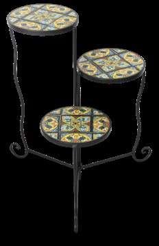Izrađeno od željeza, s mozaičnim podlogama, maksimalna nosivost 10 kg po polici. Dimenzije: Ø22 x 58 cm.