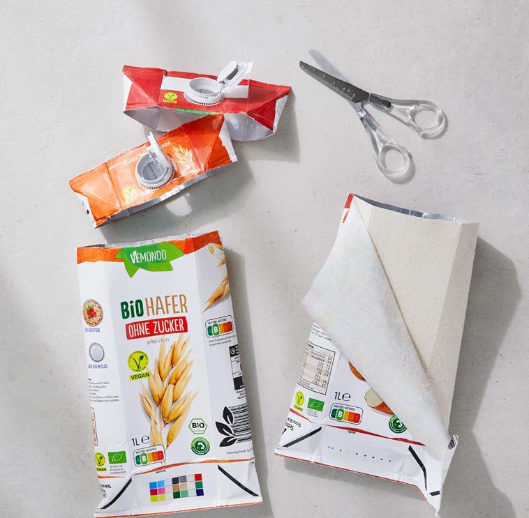 Korak 1: Priprema ambalaže Iseci gornji deo tetrapaka, temeljno ga operi i oguli spoljašnji sloj folije (papira) kako bi ostala natur tekstura.