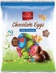 jaja sa punjenjem Kakao krem sa vafl komadićima, mlečni krem sa komadićima keksa ili krem od badema sa hrskavom karamelom
